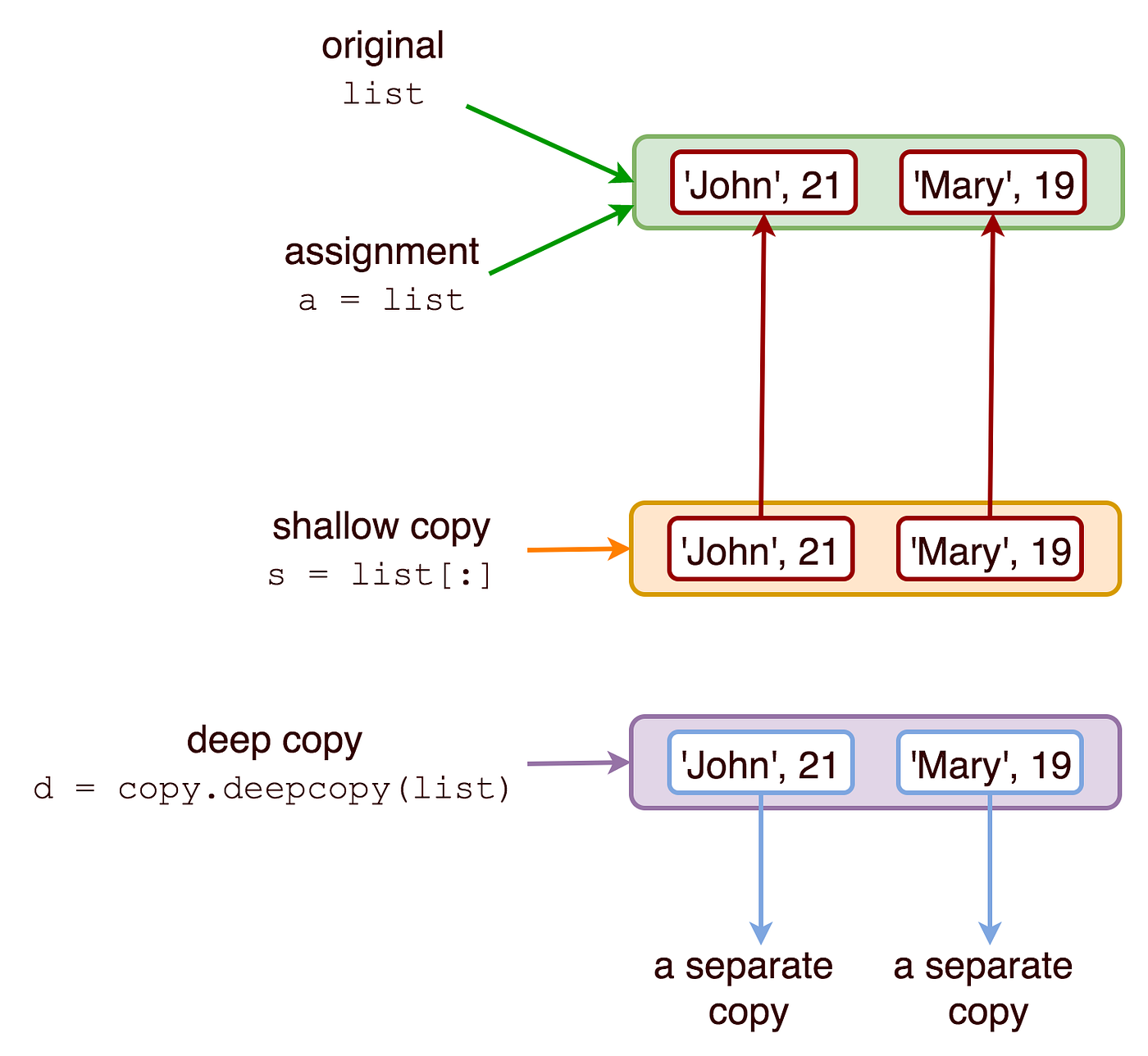 b.append('black') --> Assignment 하고 값 변경 시 원본(a)과 새 변수(b) 모두 변경됨